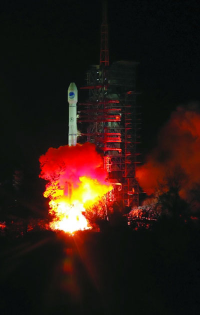 3月30日,我国在西昌卫星发射中心用长征三号乙运载火箭(及远征一号上面级),以“一箭双星”方式成功发射第三十、三十一颗北斗导航卫星。新华社发(梁珂岩摄)
