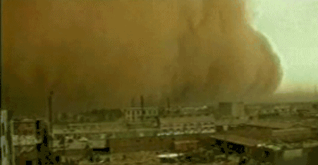 上世纪,沙尘暴侵袭我国北方城市的景象