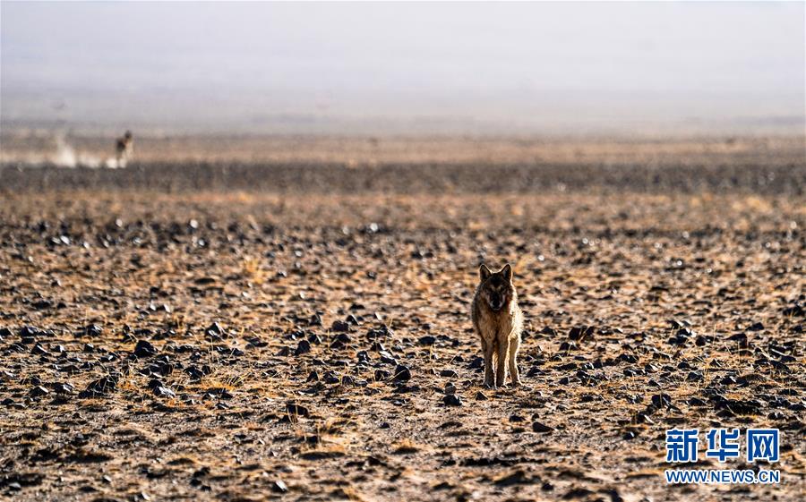 狼在阿尔金山国家自然保护区内捕猎(4月2日摄)。新华社记者 江文耀 摄