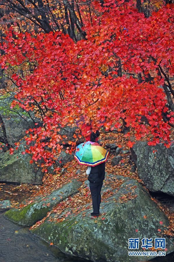辽宁丹东天桥沟森林公园的红叶(10月11日摄)。
