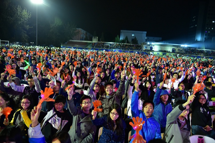 晚会及‘烛光’教学奖颁奖仪式”在学校运动场隆重举行。信息与通信工程学院执行院长张琳、理学院执行院长肖井华、经济管理学院执行院长金永生和2013级硕士研究生薄佳、2014级本科生高煜东、2015级少数民族骨干研究生李元元共同主持本次晚会。