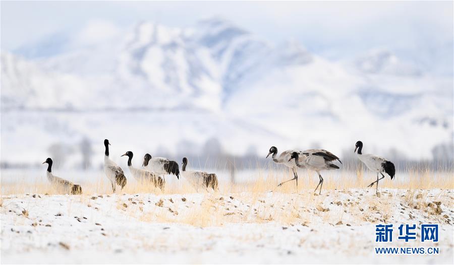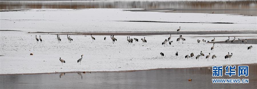 当天,西藏大部分地区迎来降雪天气。西藏拉萨市林周县黑颈鹤保护区内,国家一级重点保护野生动物、高原特有鹤类黑颈鹤在雪中嬉戏、觅食。目前西藏的黑颈鹤总数已超过8000只。