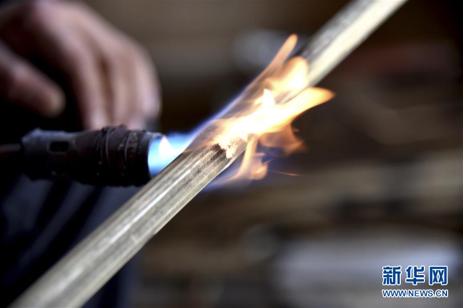 11月8日,在贵州省遵义市汇川区板桥镇,村民用火烤竹子,以便将竹子做成需要的形状。 新华社发(罗星汉 摄)