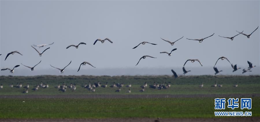一群豆雁在东洞庭湖国家级自然保护区内飞翔(2月26日摄)。 新华社记者 李尕 摄