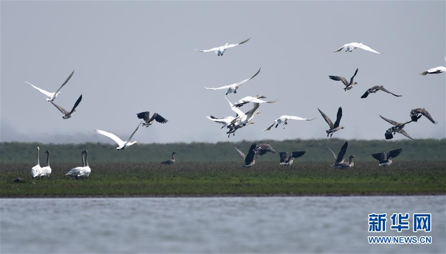 日前,大批越冬候鸟聚集在洞庭湖湿地准备北飞。每年10月份开始,大批候鸟从北方南飞抵达洞庭湖区,其中一部分候鸟在洞庭湖区稍作休整后继续南飞,另外一部分候鸟则留在洞庭湖区越冬,直到第二年春天再陆续北飞迁徙。在今年1月份进行的环洞庭湖越冬水鸟同步调查中,调查人员监测到越冬水鸟6目12科54种226352只,较上年度增加42399只,增幅23%。其中监测到国家重点保护鸟类10种11412只,国家一级保护鸟类有白鹤、白头鹤、东方白鹳、黑鹳等4种224只,监测到全球极危青头潜鸭2只和白鹤119只。