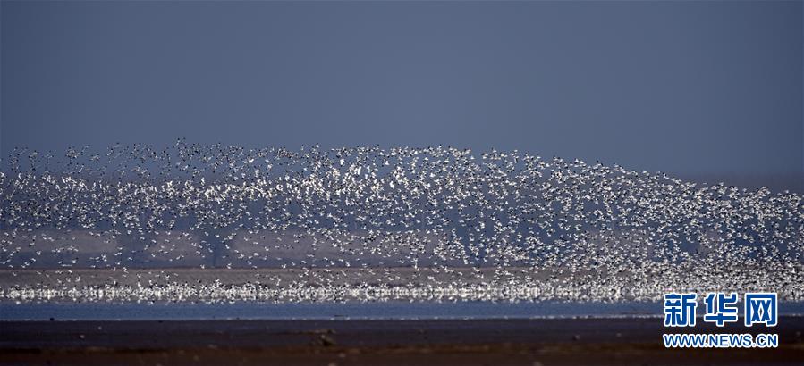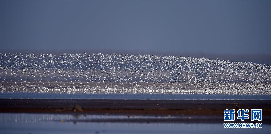 一群候鸟在东洞庭湖国家级自然保护区内聚集(2月26日摄)。 新华社记者 李尕 摄