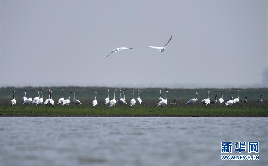 一群小天鹅在东洞庭湖国家级自然保护区内聚集(2月26日摄)。 新华社记者 李尕 摄