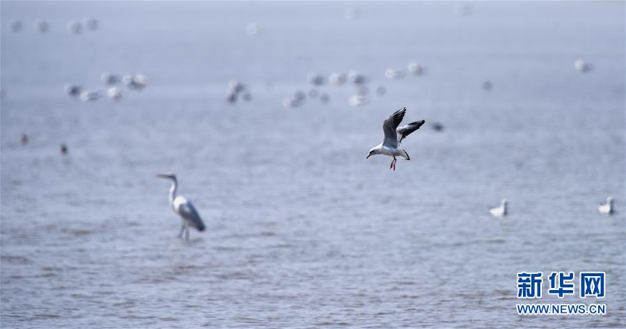 一只红嘴鸥在东洞庭湖国家级自然保护区内飞翔(2月26日摄)。 新华社记者 李尕 摄