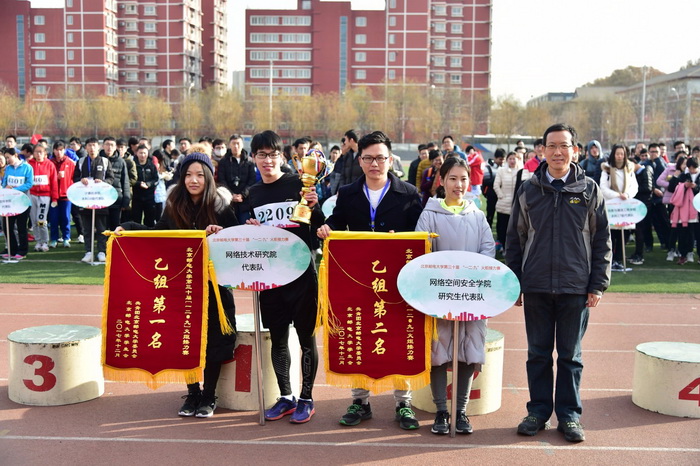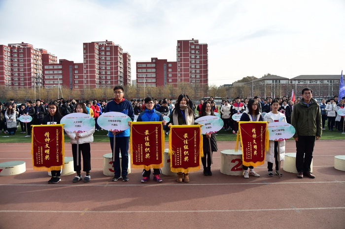 在随后举行的颁奖典礼上,获胜代表队从颁奖嘉宾手中接过锦旗和奖杯。伴随着同学们的欢呼、喝彩,北京邮电大学第三十届“一二•九”火炬接力赛圆满结束。