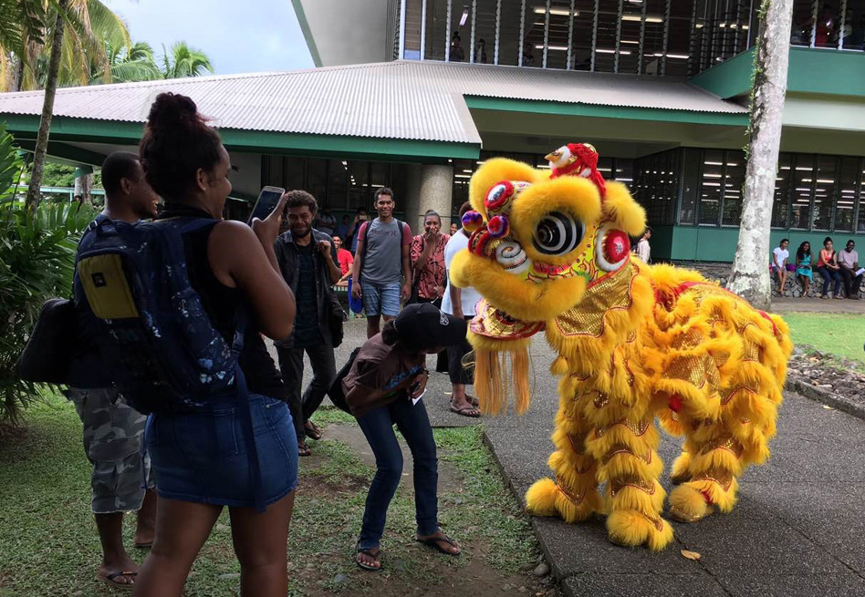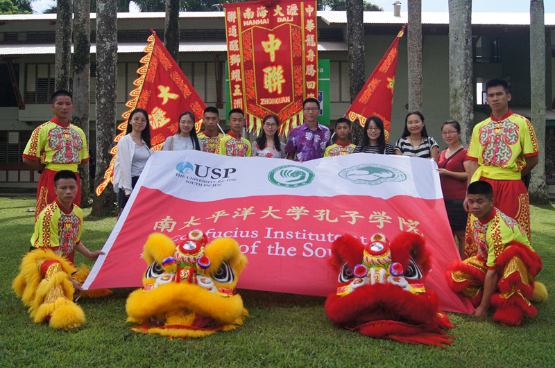 5月5日,佛山市南海黄飞鸿中联电缆武术龙狮协会(以下简称龙狮协会)一行来到了南太平洋大学。在南太平洋大学孔子学院(以下简称南太孔院)中方院长杨慧女士的带领下,龙狮协会的年轻演员们在南太平洋大学校园内进行了精彩而又富有中国传统文化气息的武术表演。