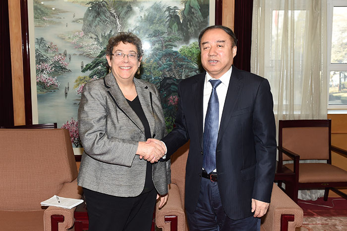 2016年3月2日,国家林业局副局长陈凤学在北京会见了国际野生生物保护学会全球副主席苏珊·利伯曼女士。双方就野生动植物和栖息地保护等问题深入交换了意见,并表示愿意进一步加强各相关领域的合作,共同推动全球生态保护。 记者蔡鸿 摄