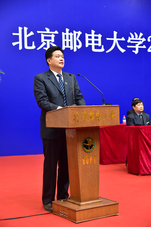 如今,以“互联网+”为代表的技术潮流,将无数青年涌入“大众创业,万众创新”的洪流,将从前不可能实现的梦想,通过互联网、通过大数据、通过“云端”,一步步变为了现实。当移动互联深刻改变了我们每个人的学习与生活,当ALPHA GO演绎的人工智能再次激发人们对信息科技的预言与猜想……对于你们来说,只要充分抓住机遇,就可能冲上时代的前沿。我们坚信,在这个时代,北邮人的舞台将会变得无限宽广,属于你们的中国梦也必将会更加多姿多彩。所以只有将目光放在更远的未来,把个人的志向、奋斗与国家的前途、民族的命运、人民的幸福结合在一起,才能真正实现人生的价值,因为这是青年的力量,也是中国的未来。(掌声)