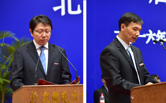 校党委副书记曲昭伟宣读了《北京邮电大学关于表彰2016届优秀毕业研究生的决定》;副校长郭军宣读了《北京邮电大学关于表彰2016年优秀硕士论文获得者的决定》。主席台领导分别为受到表彰的优秀毕业研究生代表、优秀硕士学位论文获得者和优秀硕士学位论文指导教师颁发了证书。