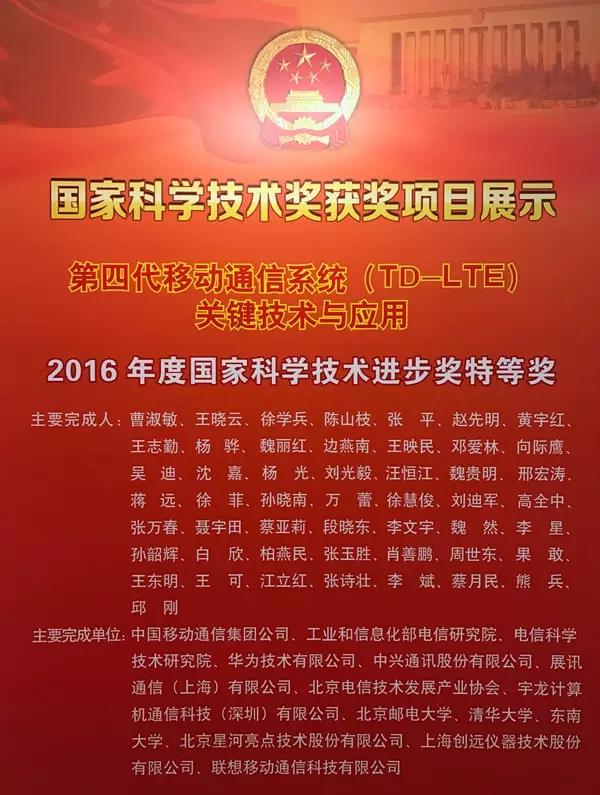 荣获2016年度国家科技进步奖特等奖