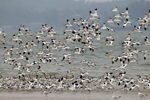 中国林业网1月27日讯 1月8日至17日,根据国家林业局的统一部署,广西壮族自治区林业厅组织开展了全国第二次陆生野生动物资源调查广西区域水鸟同步调查。在沿海地区共观测到反嘴鹬、环颈鸻、黑翅长脚鹬、黑尾塍鹬、白腰杓鹬、银鸥、红嘴鸥等水鸟30多种,种群数量上万只,其中:有濒危种——大滨鹬及全球仅存约150对的勺嘴鹬。