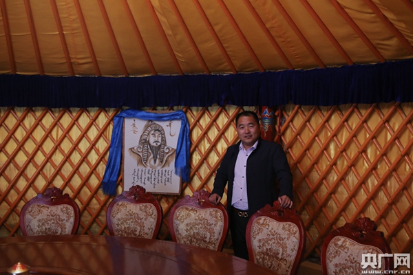 孟克达来在自家的农家乐饭店(央广网记者 郁雨铖 摄)