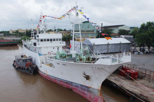 资料图片:越南海岸警卫队在越南海防市接收一艘日本援助的巡逻船。