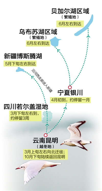 红嘴鸥北迁路线
