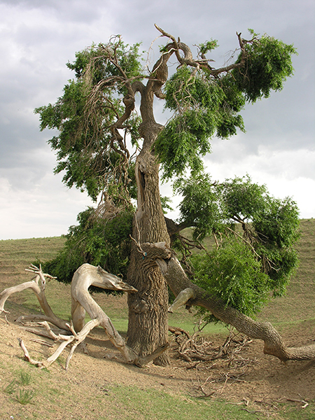 该树生长于内蒙古赤峰市克什克腾旗达尔罕乌拉苏木达里诺尔湖西北凤凰嘴。传说树龄350年,树高22米,胸围460厘米,冠幅平均12米。这棵树别名“九龙神榆”。相传很久以前一条巨大蟒蛇长期盘踞于此树上,掌管达里湖水,巨蟒死后,化作九个“龙形”树枝,形成“九龙治水”之势,继续保佑达里湖平安。果然达里湖历代平安,于是湖区牧民将此树奉为“九龙神榆”加以供奉,任何人不得破坏,就连折枝也将受到惩罚。(内蒙古赤峰市森林公安局 闫文忠)