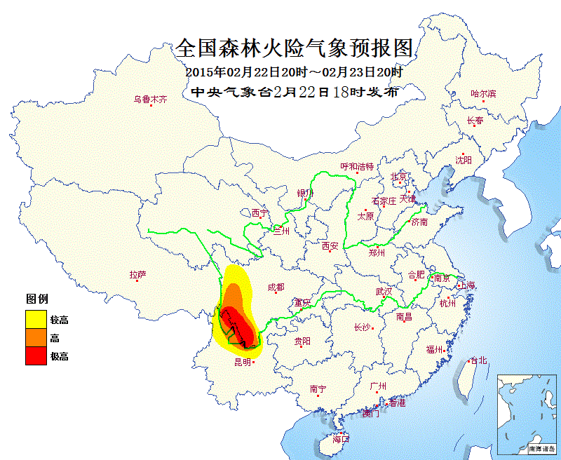 据中央气象台2月22日下午预报,今天晚上到明天,四川西部和南部、云南北部等地的森林火险气象等级为中度危险(三级)。四川西部和南部、云南西北部的部分地区森林火险气象等级为高度危险(四级)。其中,四川南部、云南西北部的局部地区森林火险气象等级为极度危险(五级)。