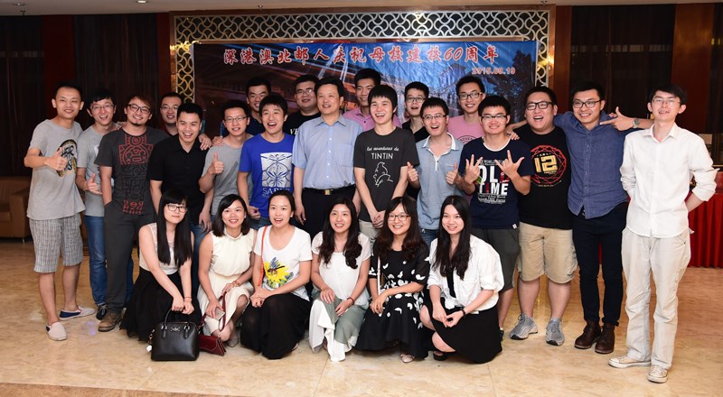 在现场热烈的氛围中,校领导和校友代表共同切蛋糕,全场起立鼓掌为母校庆祝生日。校友们以建校年份1955为密码,建立了深港澳校友会庆祝母校60华诞微信群。