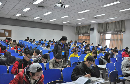 我校本科生期末考试自1月18日开始正式进行,1月22日王亚杰书记在教务处孙洪祥处长等相关老师陪同下深入校本部考场,巡视考场秩序。