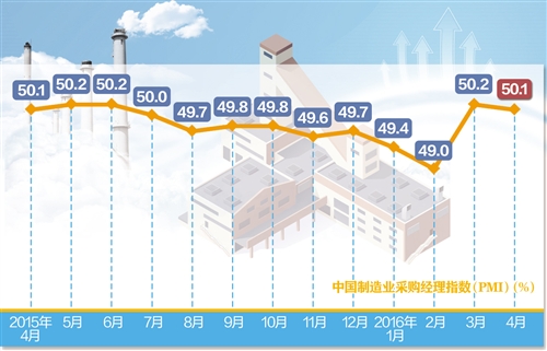 4月制造业PMI为50.1% 经济增长保持企稳态势